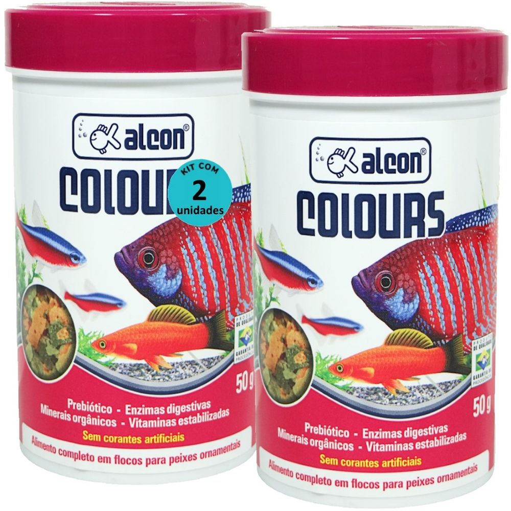 Ração Alcon Colours Flocos 50g é um alimento completo em flocos para peixes ornamentais que combina uma grande variedade de ingredientes selecionados.