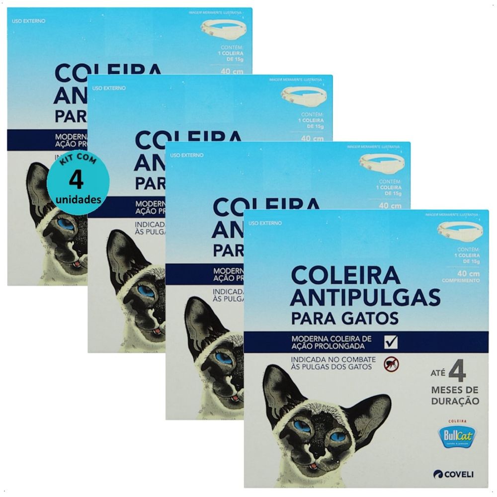 COLEIRA ANTIPULGAS BULLCAT PARA GATOS 40CM E 15G COVELI KIT COM 4