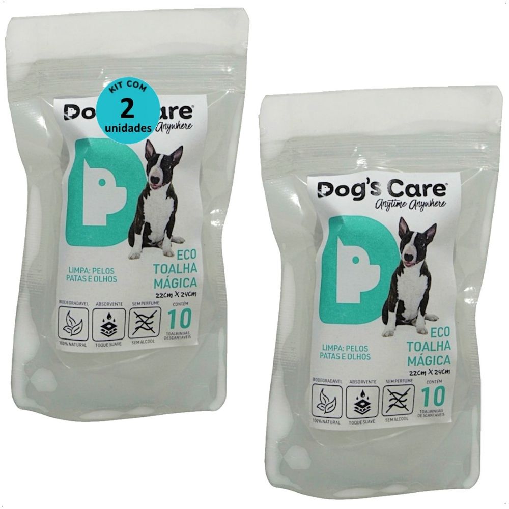 ECO TOALHA MÁGICA PARA PET LIMPA PELOS PATAS OLHOS COM 10 UN DOGS CARE KIT COM 2