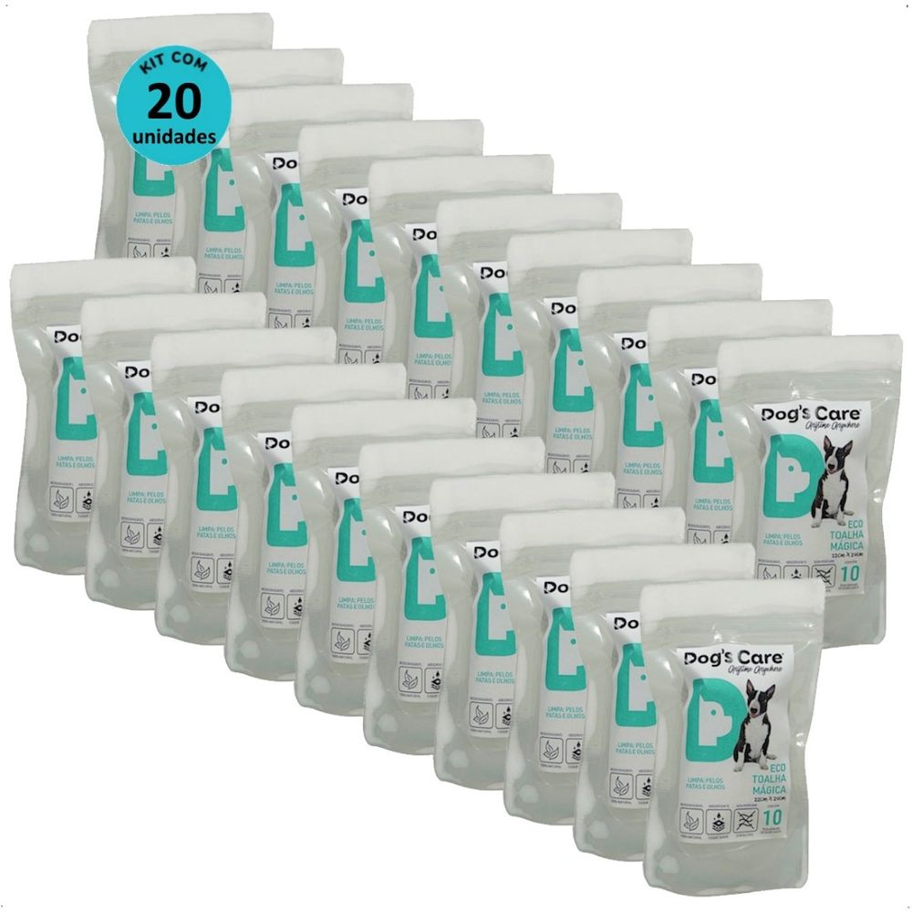 ECO TOALHA MÁGICA PARA PET LIMPA PELOS PATAS OLHOS COM 10 UN DOGS CARE KIT COM 20
