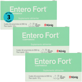 Kit 3 Entero Fort 2000mg Com 60 Comprimidos Suplemento Alimentar Para Cães e Gatos König
