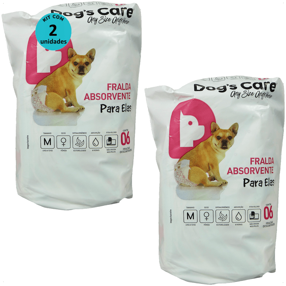 FRALDA HIGIÊNICA DESCARTÁVEL DOGS CARE TAMANHO M 6 UN PARA CÃES FÊMEAS KIT COM 2