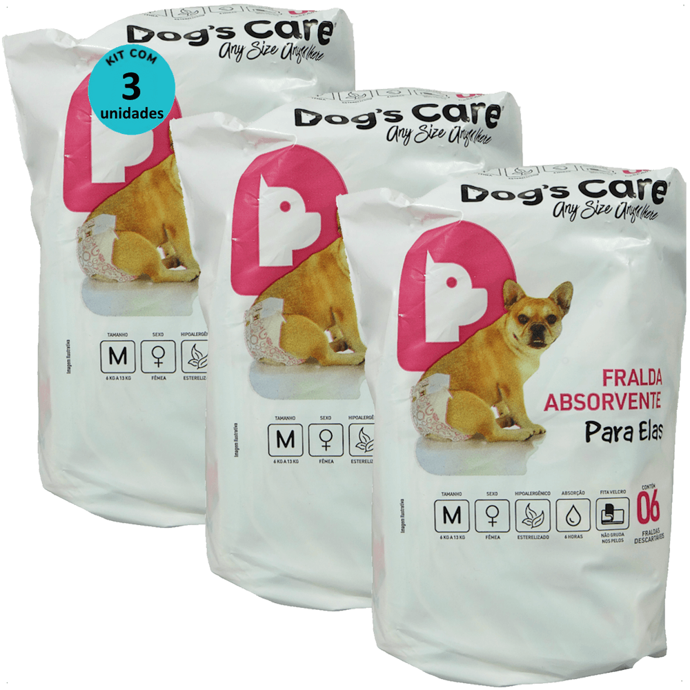 FRALDA HIGIÊNICA DESCARTÁVEL DOGS CARE TAMANHO M 6 UN PARA CÃES FÊMEAS KIT COM 3
