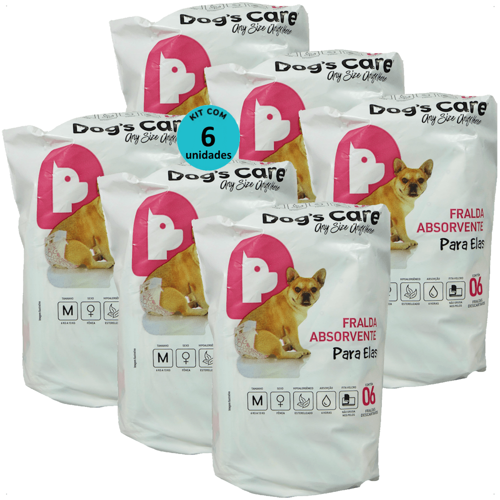 FRALDA HIGIÊNICA DESCARTÁVEL DOGS CARE TAMANHO M 6 UN PARA CÃES FÊMEAS KIT COM 6