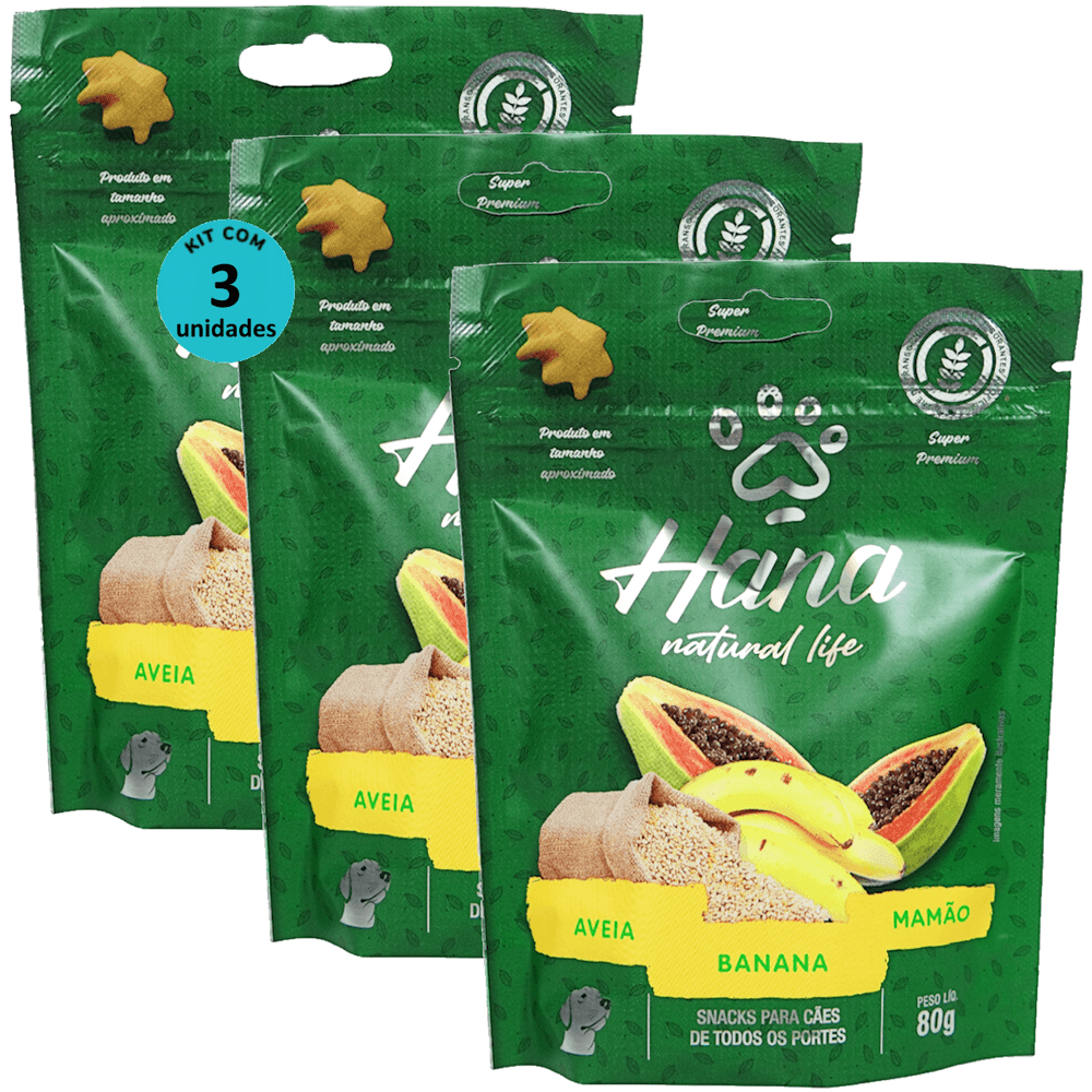 Kit 3 Hana Natural Life Aveia Açaí Banana 80g Snacks Para Cães Adultos