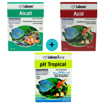Use Labcon Test pH Tropical para monitorar o pH. Lembre-se que correções devem ser realizadas de forma gradual, pois mudanças bruscas causam estresse nos peixes.