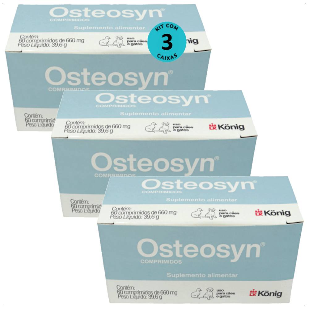 OSTEOSYN 660MG VITAMINAS CÃES E GATOS 60 COMPRIMIDOS KONIG KIT COM 3