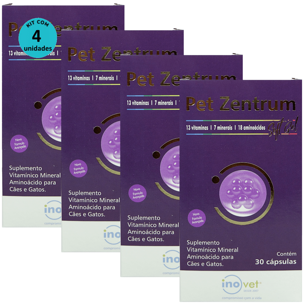PET ZENTRUM SOFT GEL COM 30 CÁPSULAS PARA CÃES E GATOS KIT COM 4