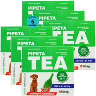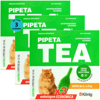 Pipeta Tea é uma solução pulguicida composta por ativos extremamente seguros e aplicados por via tópica em cães, variando a dose pelo peso indicado em cada embalagem.