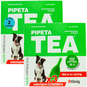 Kit 2 caixas de Pipeta Tea 3,2ml Antiparasitário Contra Pulgas para Cães de 10,1 até 25 Kg C/ 3 unid.