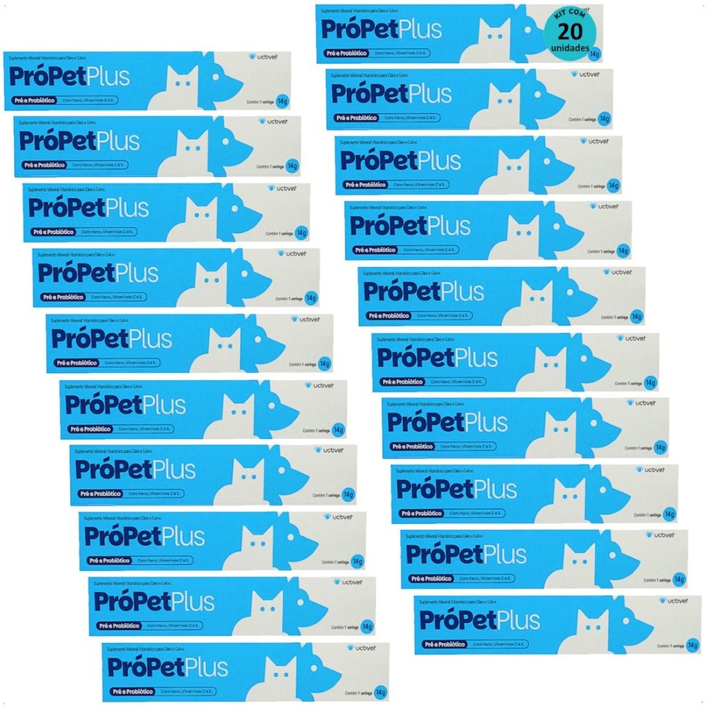 PRÓPET PLUS SUPLEMENTO PRÉ E PROBIÓTICO PARA CÃES E GATOS 14G UCBVET KIT COM 20