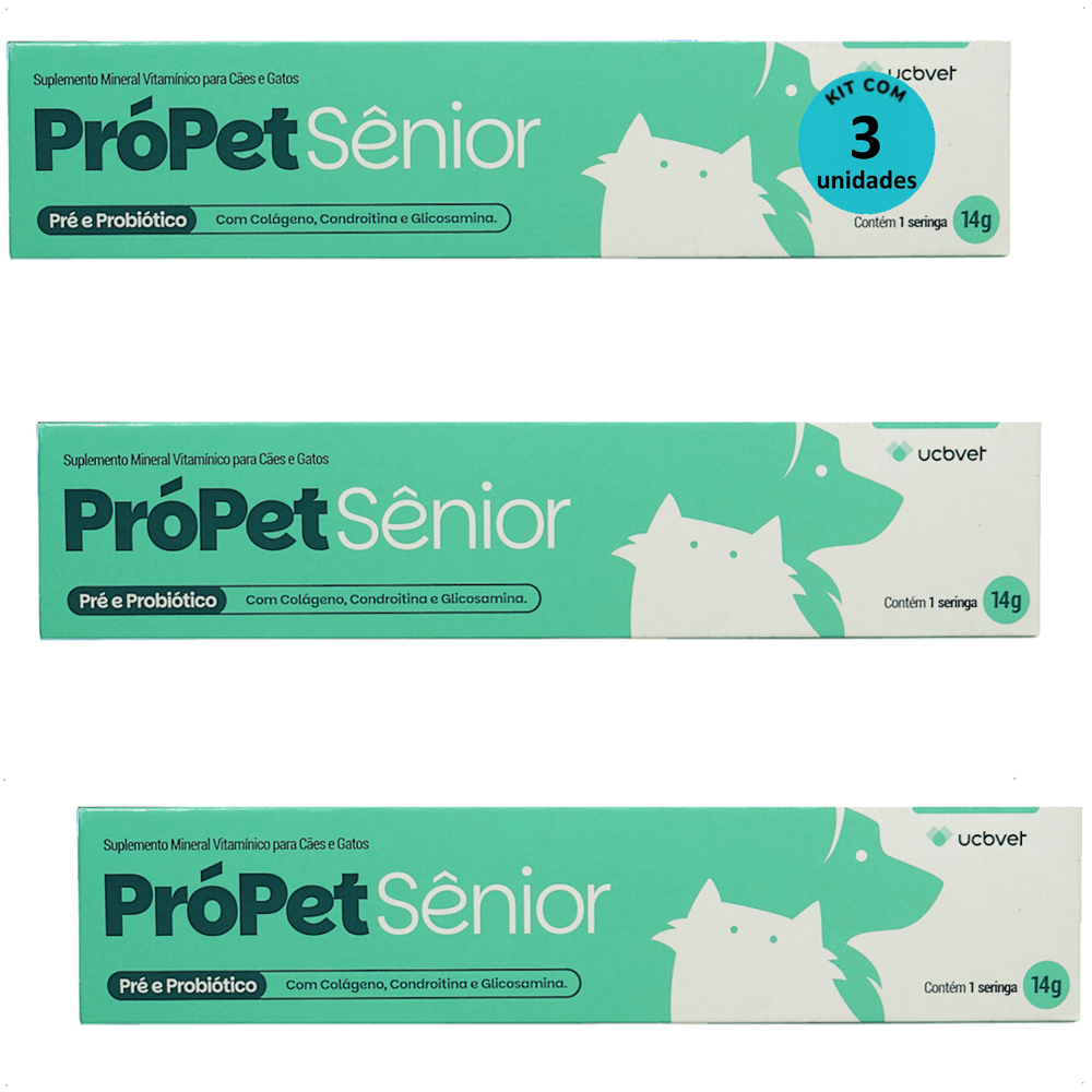 PRÓPET SÊNIOR 14G PRÉ E PROBIÓTICO PARA CÃES E GATOS UCBVET KIT COM 3