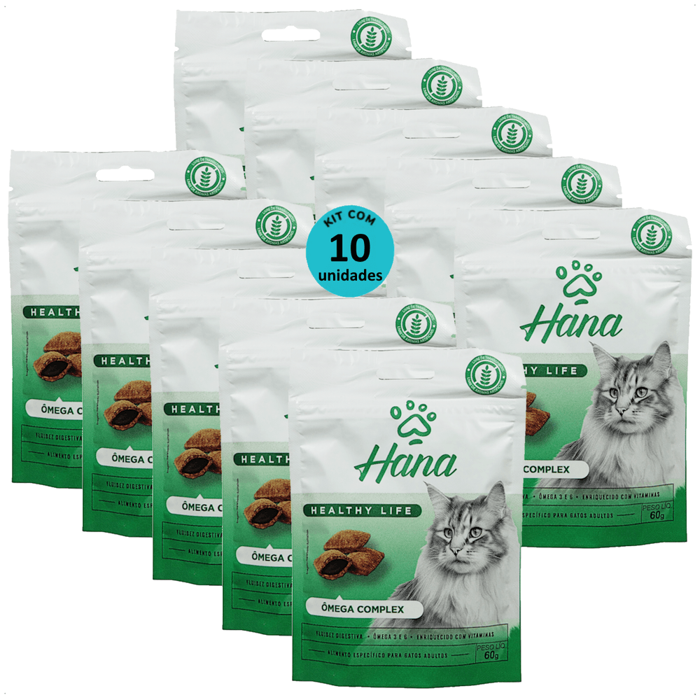SNACK HANA HEALTHY LIFE ÔMEGA COMPLEX PARA GATOS ADULTOS 60G KIT COM 10