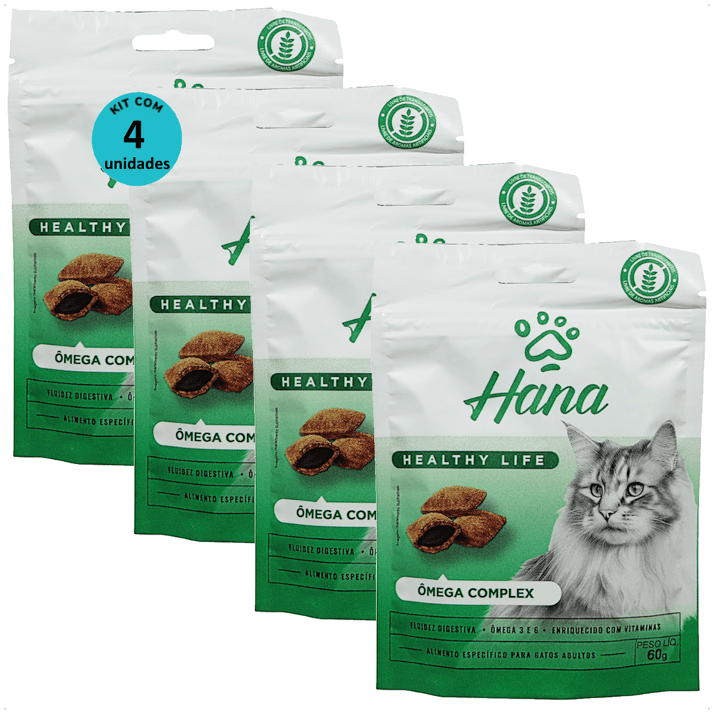 SNACK HANA HEALTHY LIFE ÔMEGA COMPLEX PARA GATOS ADULTOS 60G KIT COM 4