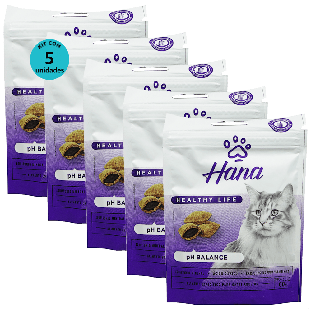 Kit 5 Snacks Hana Healthy Life Urinary Control P/ Gatos Adultos 60g