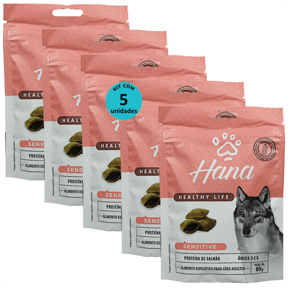 Kit 5 Snacks Hana Healthy Life Hypoallergenic Proteção Antialérgica P/ Cães Adultos 65g