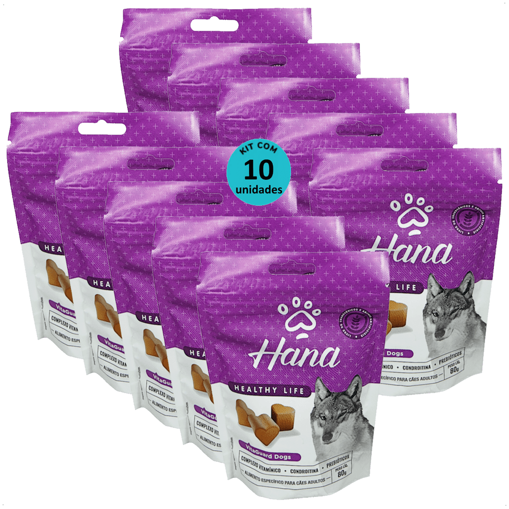 SNACK HANA HEALTHY LIFE VITAGUARD DOGS PARA CÃES ADULTOS 80G KIT COM 10