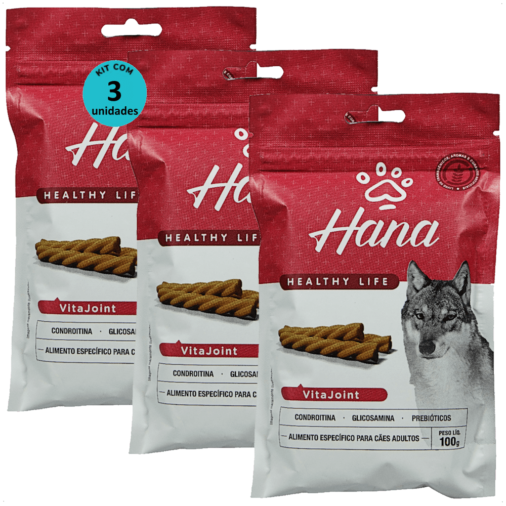 Kit 3 Snacks Hana Healthy Life Articular Care Proteção Articular P/ Cães Adultos - 100g