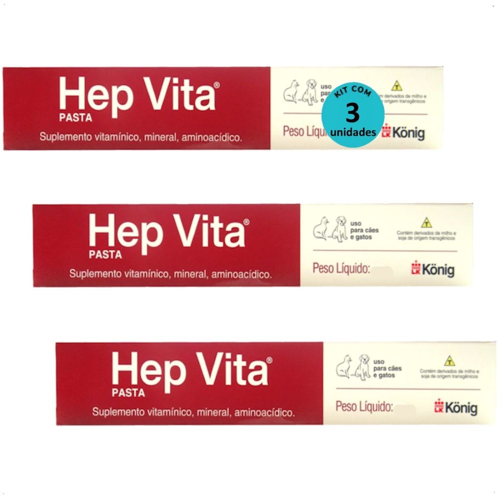 SUPLEMENTO ALIMENTAR PARA CÃES E GATOS HEP VITA 30G KONIG KIT COM 3